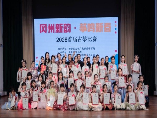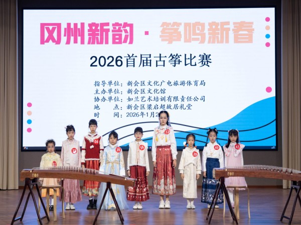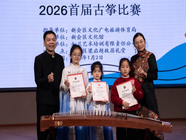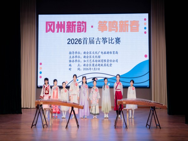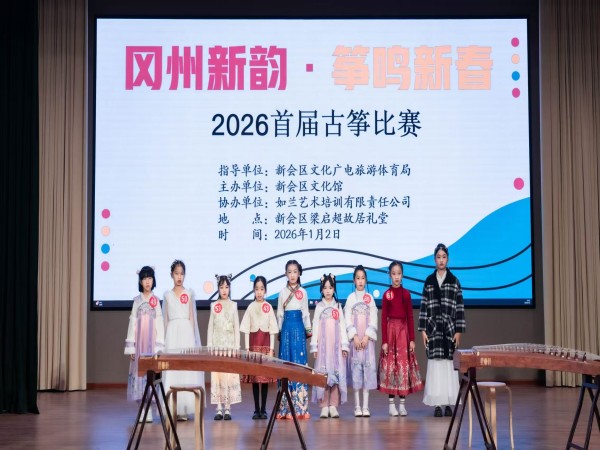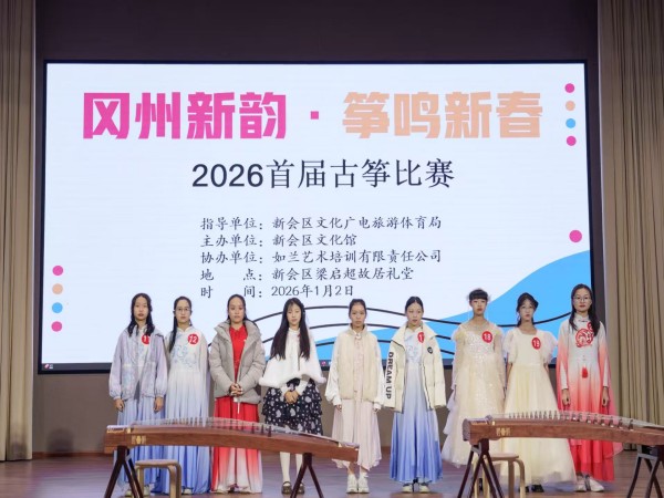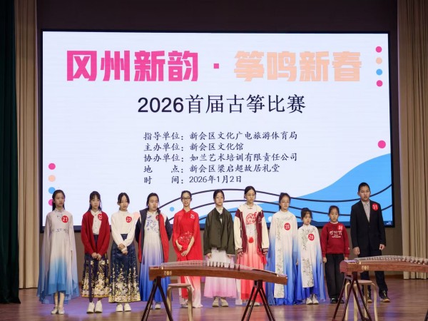 2026年1月2日,由新会区文化馆主办、新会区全民艺术普及公益联盟协办、如兰艺术培训有限责任公司承办的“冈州新韵·筝鸣新春”2026首届古筝比赛在梁启超故居礼堂圆满举行。本次比赛以传统古筝艺术为载体,为元旦佳节增添浓厚的文化氛围,吸引众多古筝爱好者及市民参与,共同在悠扬筝声中迎接新的一年。