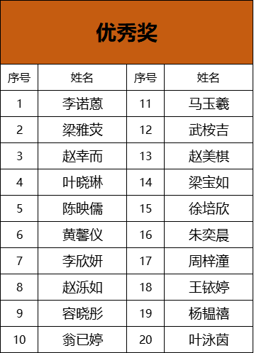 获奖名单如下: