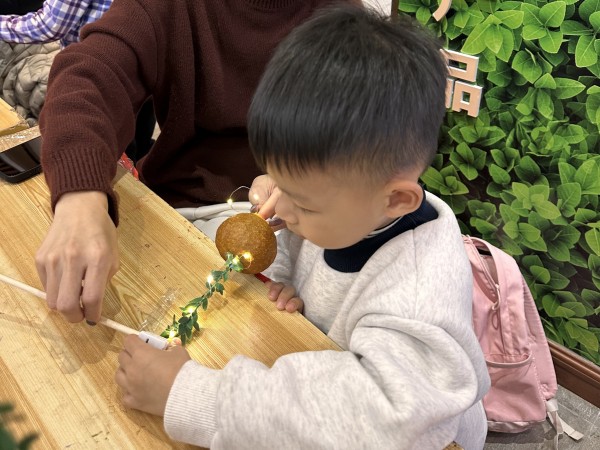 参观学习后,大家最期待的非遗陈皮手作环节终于开始啦!这一次,我们把“健康”与“趣味”搬到了桌面上。大家化身“手作匠人”,在老师的指导下,动手制作了驱蚊陈皮艾草养生锤和陈皮柑灯两款超实用的养生好物。