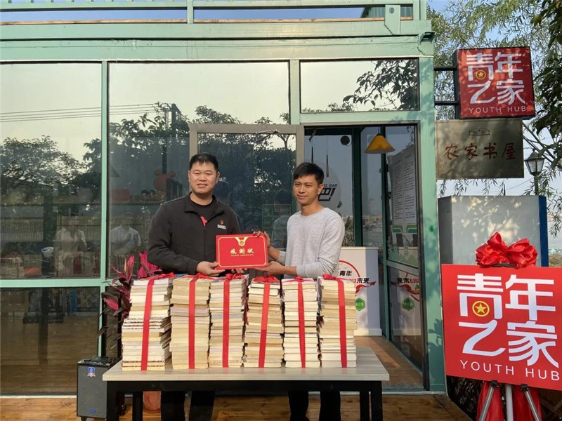 揭牌仪式结束后,江门市中心医院核介党支部和江门中心医院医技综合团支部在南安村“青年之家”进行了图书捐赠,汇聚青年力量传递爱心。丰富的图书资源,营造出浓郁的读书氛围,让书香飘溢在南安村的每个角落。