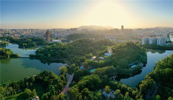 江门城市品质不断提升,东湖公园被称为“绿肺”。郭永乐 摄 此外,还不得不提起江门人记忆中抹不去的东湖公园。“我是在东湖这片地土生土长的老江门人,加上在东湖公园工作几十年,见证和参与了公园建设发展的全过程。2014年7月1日,东湖公园正式免费开放,连围墙也没了,变得越来越亲民。”生于斯、成长于斯的东湖公园管理所老所长翁苟感慨万分。 东湖公园致力于公园城市建设,树立大园林观,积极建设“山青、水净、地绿、天蓝”的生态名片。自2012年以来,结合“森林围城,树林进城”绿色行动和“创建国家森林城市”等工作,东湖公园先后多次开展林相改造、义务植树、“我为城市添新绿”等认种认建认养活动,热心人士和市民广泛参与,绿化覆盖率达83%。 同时,东湖公园积极推进水污染防治行动计划,2021年,以“我为群众办实事”实践活动为抓手,实施东湖水质提升项目。主体工程完工后,在“水下森林”的作用下,内湖、外湖湖水水质从改造前为Ⅴ类水质分别提升至Ⅲ类、Ⅱ类水质,2022年上半年在江门市19条跨县河流(湖库)河长制水质考核监测中综合排名第一。今天的东湖公园,碧湖清波,水草丰茂,莲池风景好,园内市民的手机和“长枪短炮”拍个不停,好一派闲庭信步、怡然自得的优美景象。