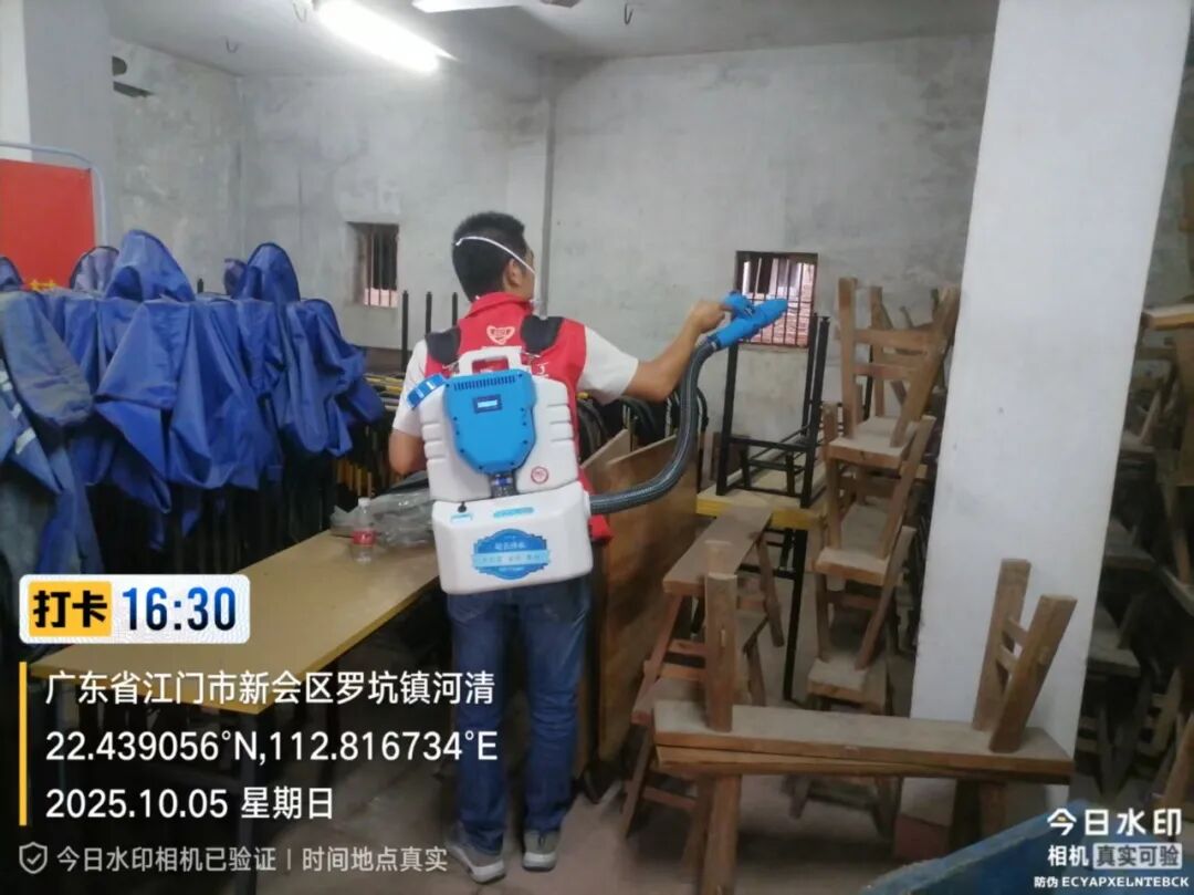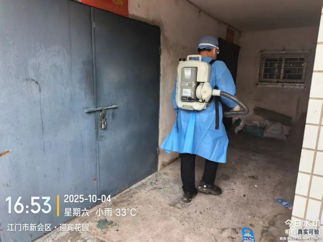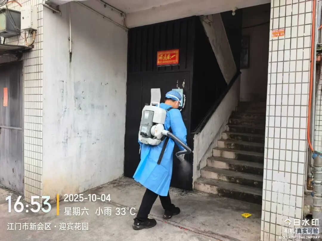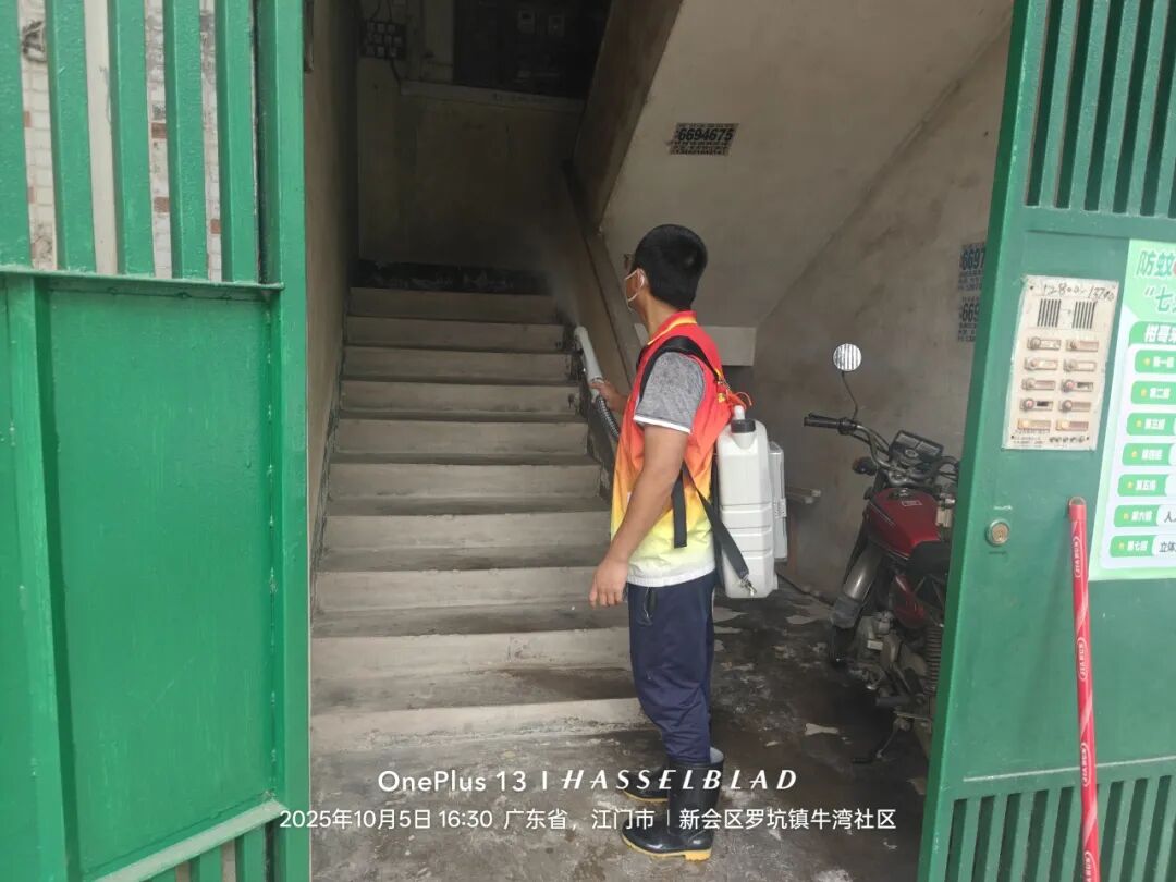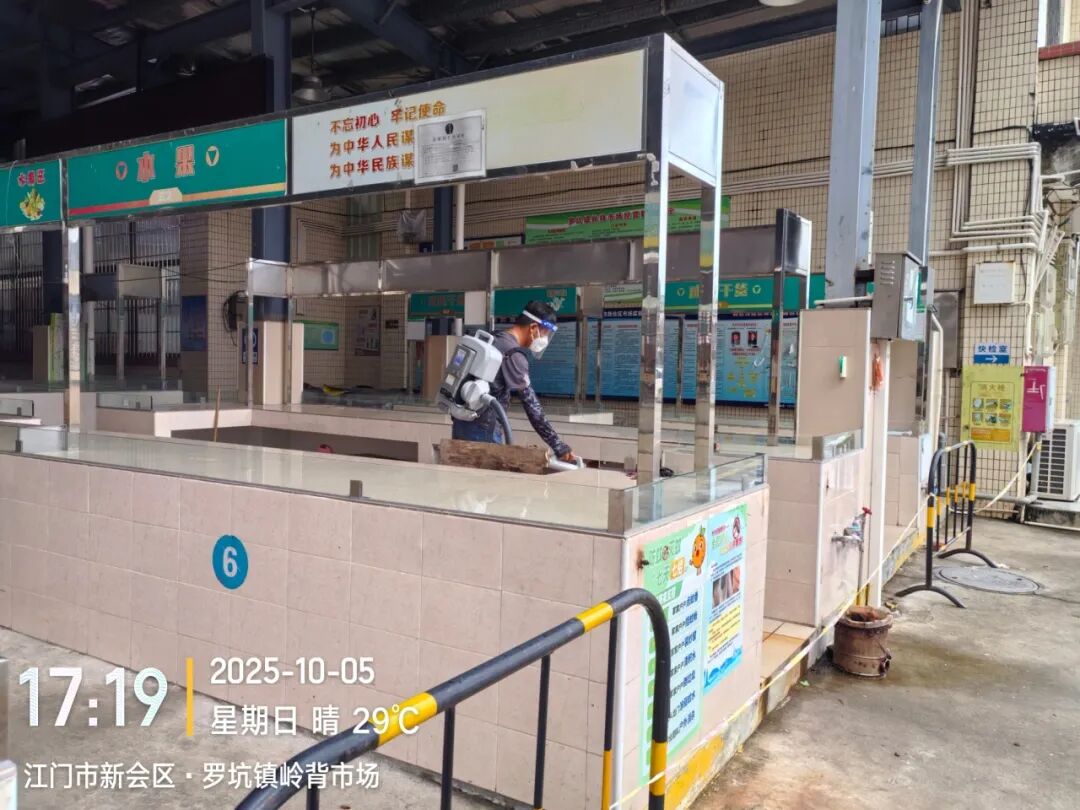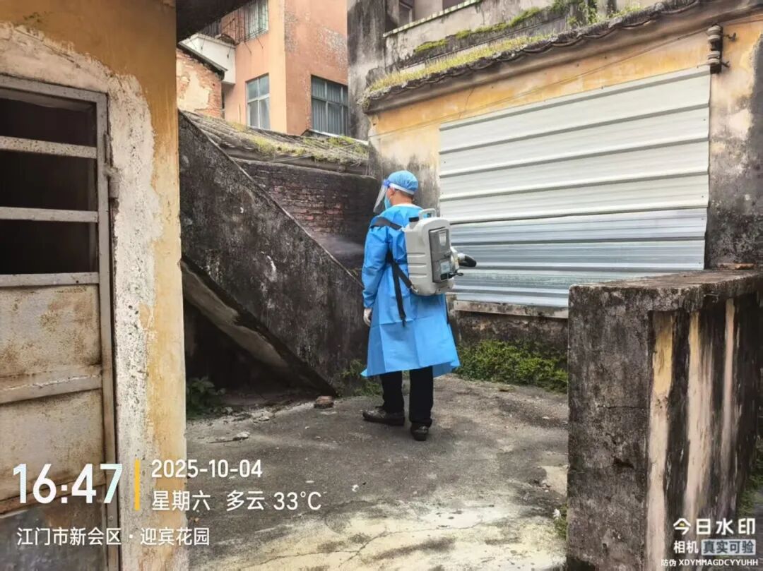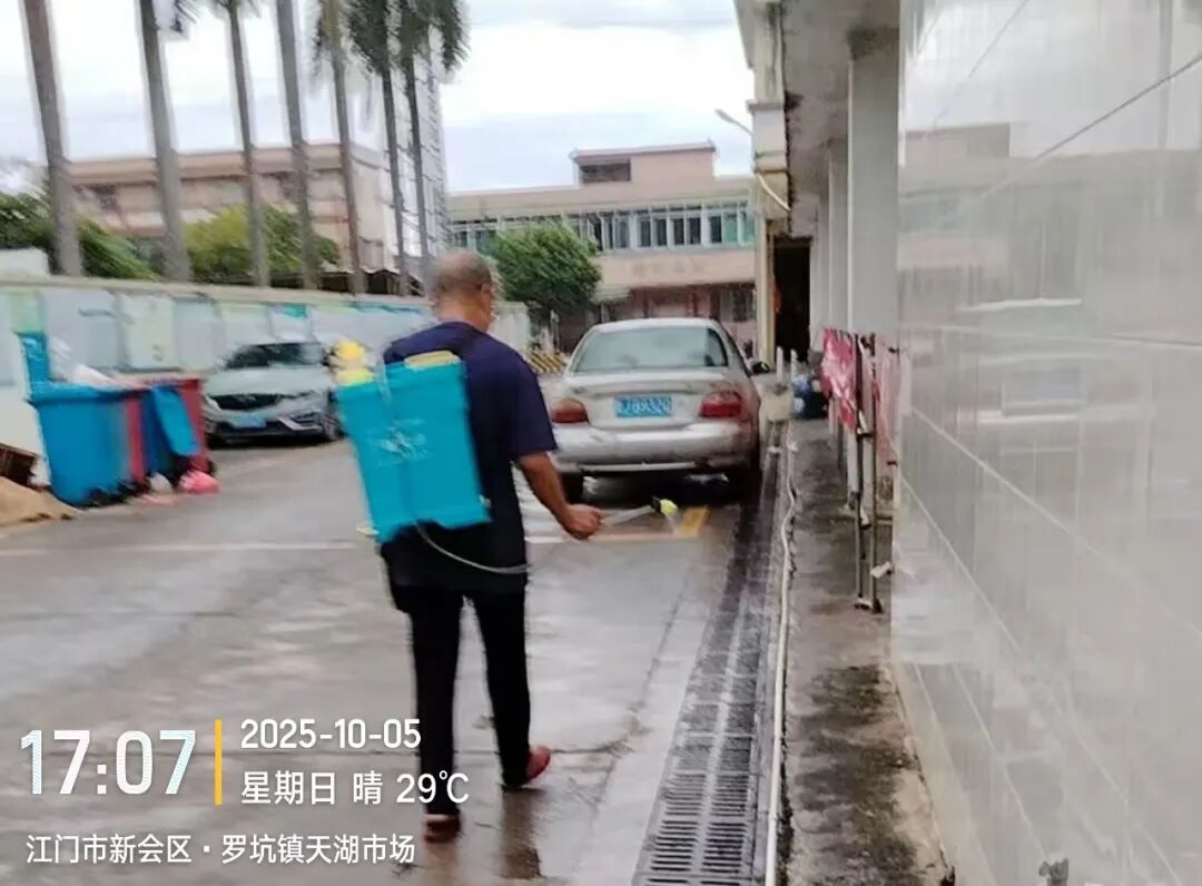 此前,全镇已对农贸市场、学校、医疗机构等重点场所开展系统防控,针对雨天蚊虫易滋生的特点,本次消杀行动特别强化对积水区域和密闭空间的处置,从源头阻断蚊媒孳生。行动全过程由镇虫媒传染病疫情防控指挥部指导,严格选用具备“三证”的合格药剂,按规范配比使用。