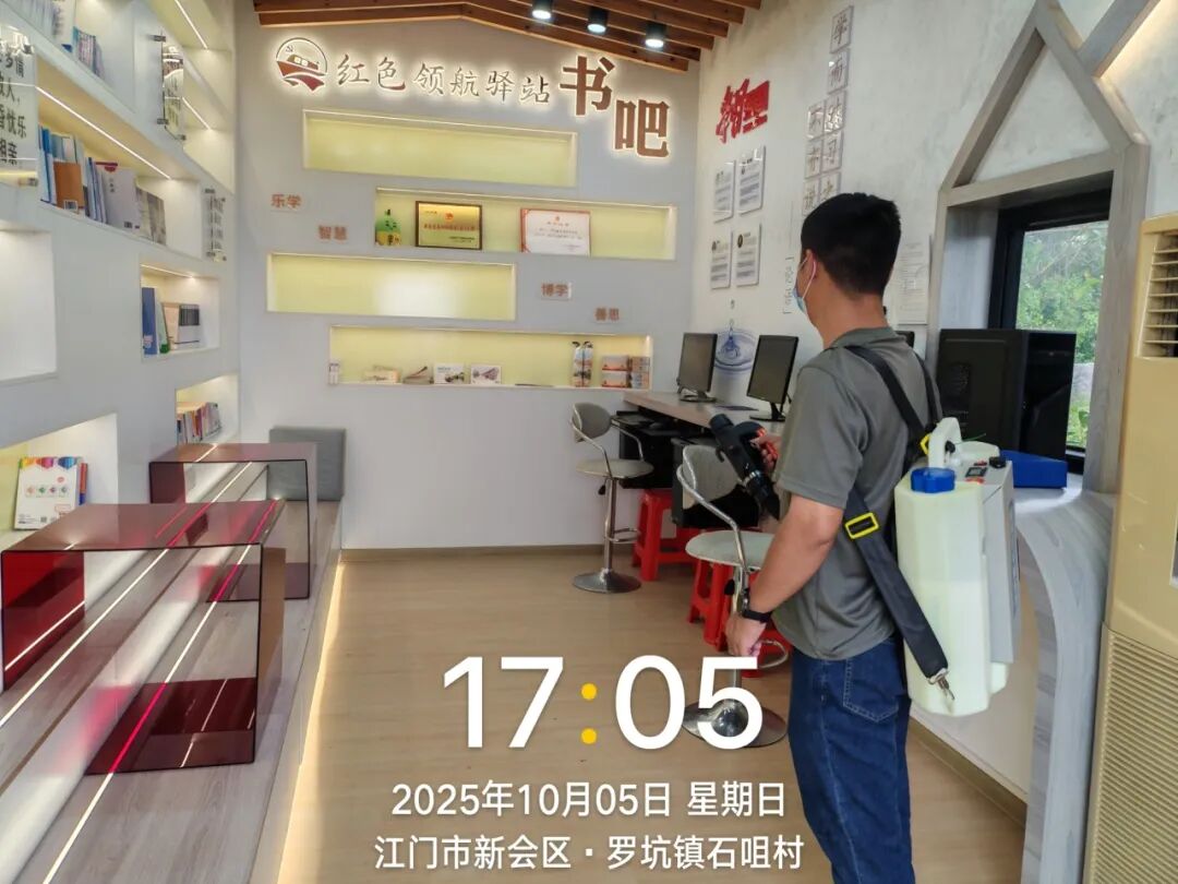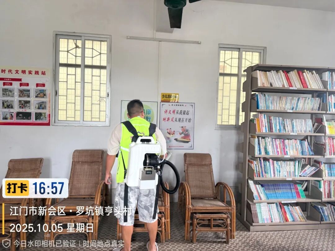 各村(居)同步响应,驻村干部与村(居)委会干部深入老年人活动室、图书室、柴房、工具房等区域开展常量消杀。