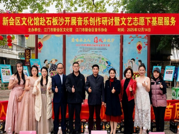 作为活动亮点之一,新会区文化馆携手区音乐协会文艺志愿服务小分队,在岛上开展了一场别开生面的音乐创作研讨活动。文艺志愿者们不仅围绕疍家文化题材进行了实地采风与创作交流,更在石板沙文化广场带来了一场充满感染力的歌声表演。原创歌曲《疍家情》《渔家儿女》等歌曲的动人演绎,将现场氛围推向高潮,也为这座宁静的水乡小岛注入了跃动的艺术气息。