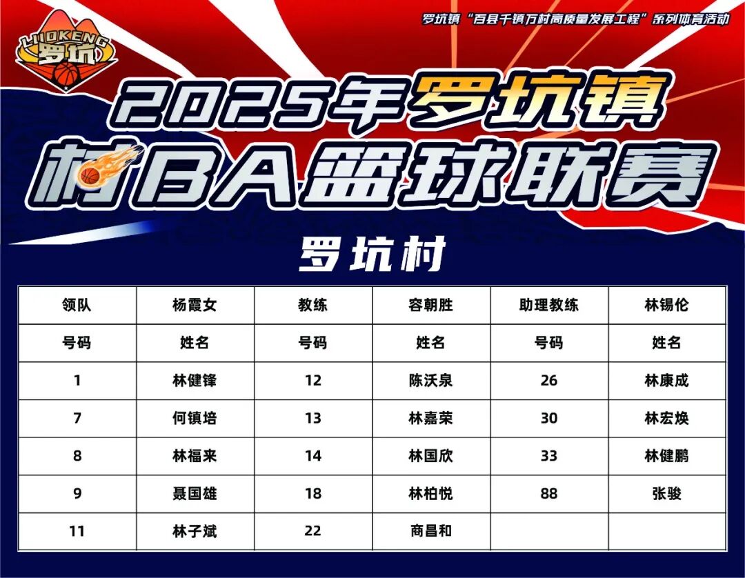 为了充分彰显罗坑丰富的文旅资源和山水文化,为文旅项目打好基础、吸引人流,提升罗坑的整体知名度,加速文体赋能“百县千镇万村高质量发展工程”,由罗坑镇人民政府主办,江门市尚升体育文化发展有限公司承办的2025年罗坑镇村BA篮球赛于2025年12月26日(本周五)在罗坑镇全民健身广场篮球场开赛!