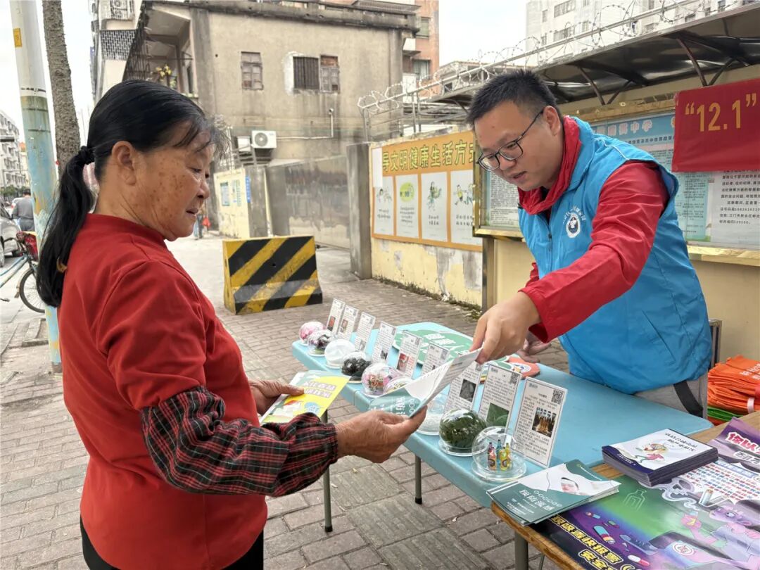 活动现场,工作人员向同学们以及群众派发禁毒宣传资料和礼品,再结合毒品仿真模型,让他们对传统毒品、新型毒品的外观、滥用方式、滥用危害以及如何防范等知识有了深一层的了解。随后,结合“12.1艾滋病日”主题,让大家了解到毒品与艾滋常被视作为形影不离的“两兄弟”,是危害人类健康的两大“毒瘤”,它们不仅摧毁个人生命,更会破坏家庭幸福和社会稳定,最后引导大家要自觉做好自己健康的第一责任人,共同携手禁毒防艾。