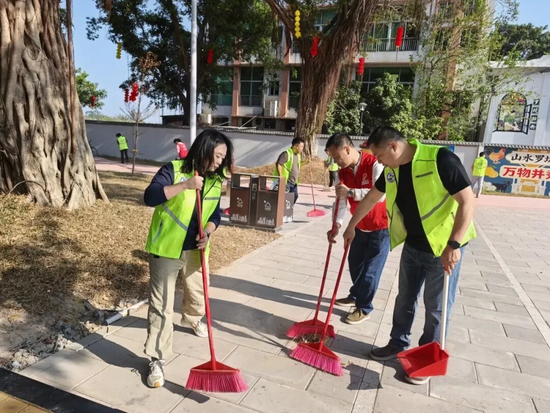 各村(社区)也同步掀起清洁热潮,与圩镇中心区域行动同频共振。村居干部带头清理村内巷道、沟渠、公共区域的杂物垃圾,重点清除蚊媒孳生地,筑牢病媒生物防控屏障,引导群众开展居家大扫除,号召大家擦窗户、扫庭院、清角落,及时清运房前屋后的垃圾,让家家户户都以干净整洁的面貌迎接新年。