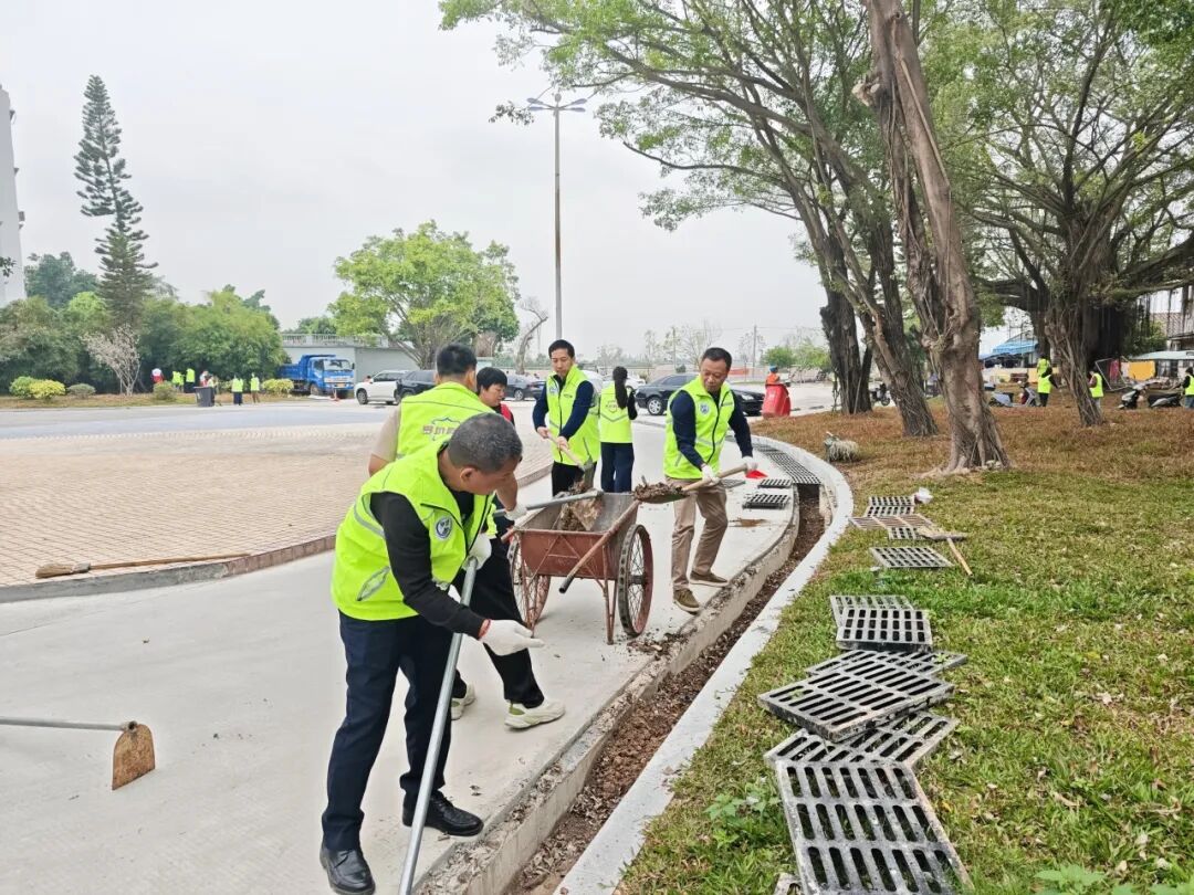 全区动员会后,邹志强、镇党政主要领导带领机关各部门、中心小学、陈瑞祺中学志愿者在滨江公园及冠华停车场周边主场地率先行动,各驻村(社区)领导、组员与村(社区)干部在各村(社区)分场地同步开展整治,形成“主分联动、全域覆盖”的行动格局。