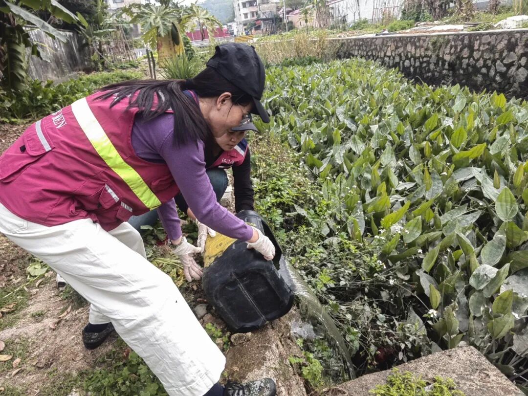 行动现场,全体参与人员手持清洁工具,分工协作、干劲十足。主场地重点对滨江公园、冠华停车场周边的积存垃圾、卫生死角进行全面清理,疏通公园水渠,并为下水口加装防蚊纱网,从源头消除蚊媒孳生环境;各村(社区)分场地则聚焦主干道周边、背街小巷、房前屋后等关键区域,拉网式排查并清除各类积水容器、废弃轮胎、花盆托盘等蚊虫孳生地,清运垃圾杂物、疏通沟渠,对冷巷、闲置屋及周边环境进行彻底整治,让卫生死角无处遁形。
