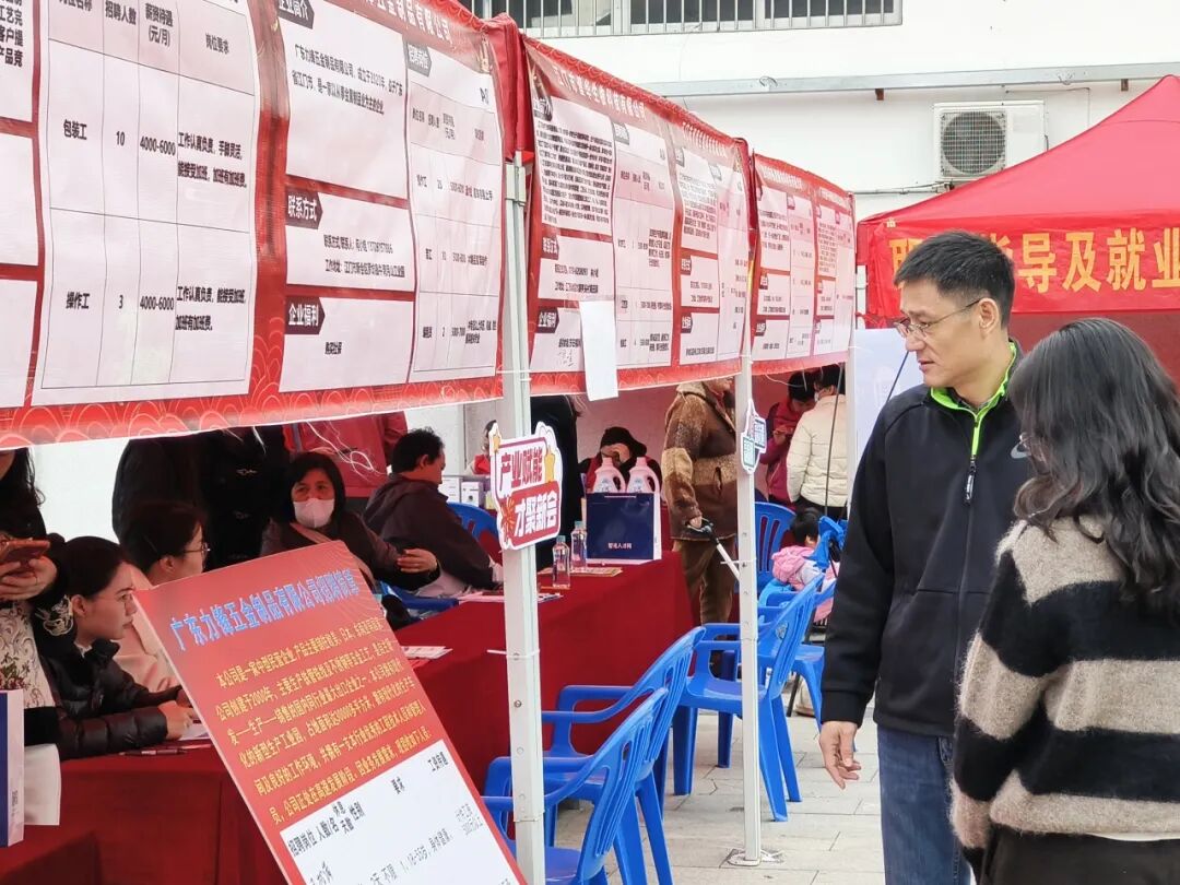 罗坑镇党委副书记、镇长梁嘉键,新会区人社局党组成员、副局长林健欣来到招聘活动现场,深入企业展位,详细了解节后用工需求、岗位待遇及招工情况,围绕稳岗留工、技能提升、职业发展等提出指导意见。罗坑镇副镇长许美兰陪同。
